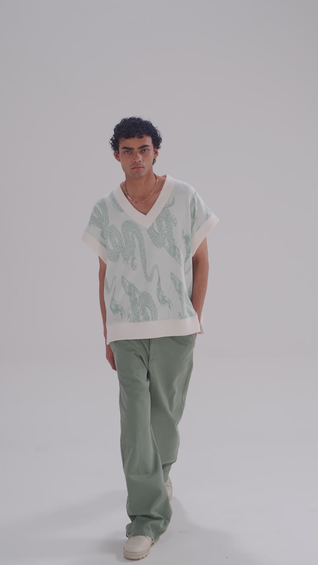 Redefine your streetwear collection with this premium jacquard dragon sweater vest, a signature piece in India's vibrant streetwear scene. Designed for those who make an impact, this vest features a unique contrast jacquard pattern, side slits for a modern edge, and a stylish “V” neckline. Complete with a silicone branding patch, it captures the essence of a leading streetwear brand. Stand out with high-quality streetwear that sets you apart from the crowd